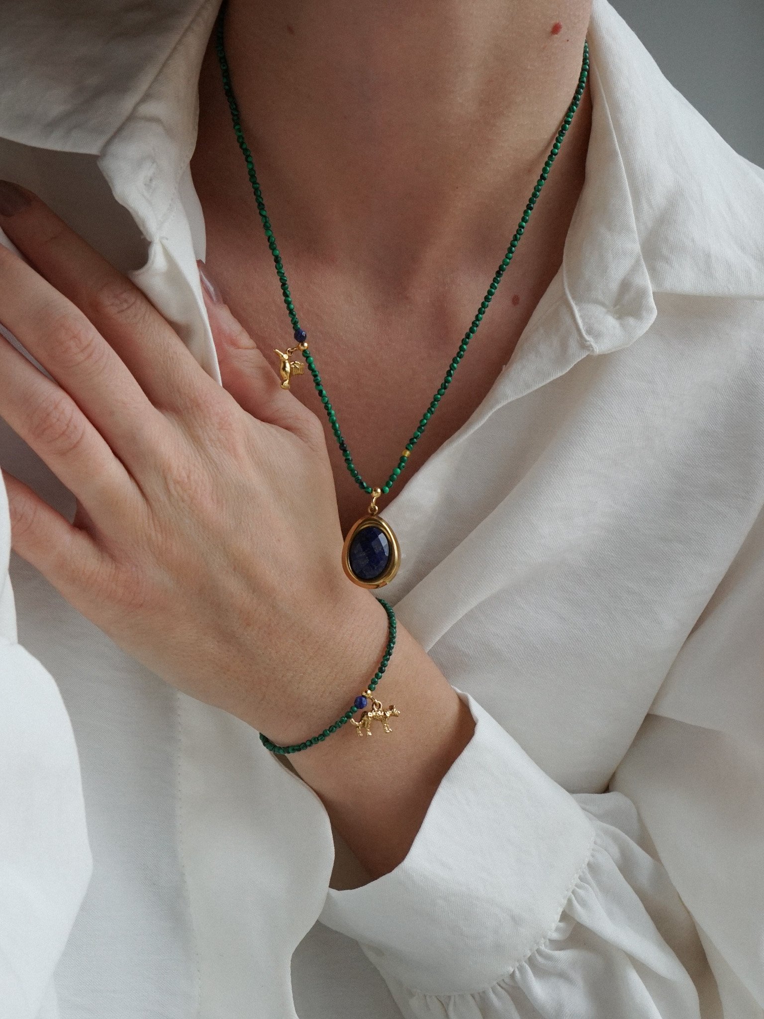 MATERIAŁ: malachit, lapis lazuli, agat, srebro pozłacane, stal nierdzewna