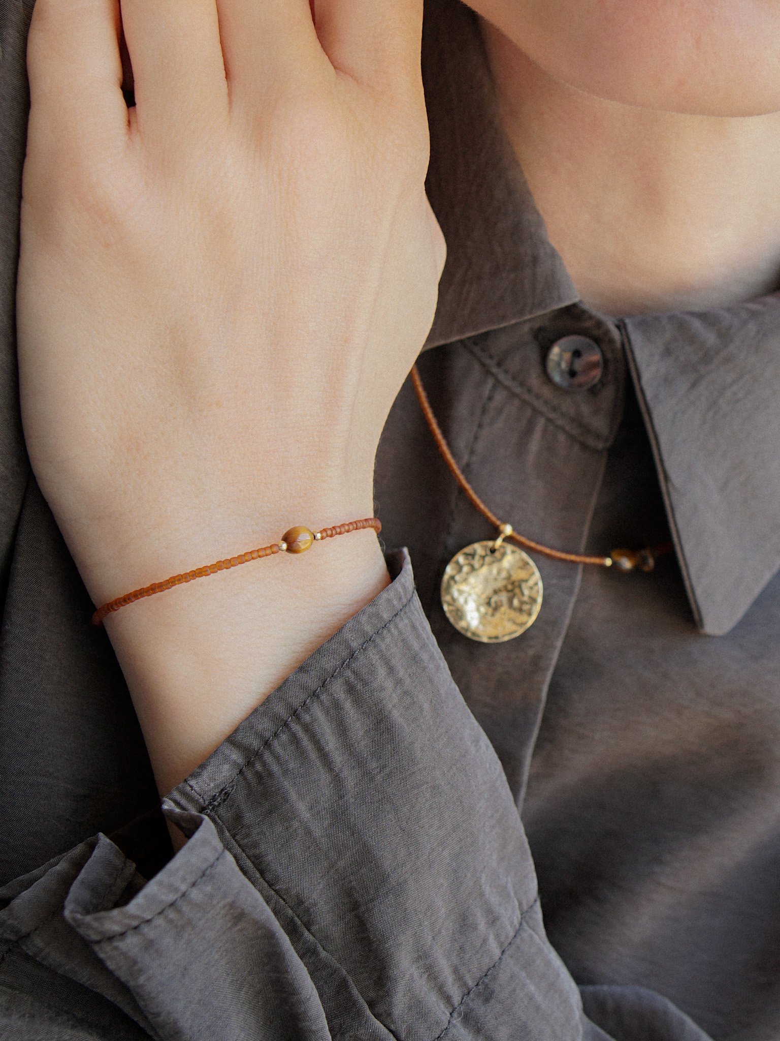 MATERIAŁ: tygrysie oko, koraliki szklane, srebro pozłacane